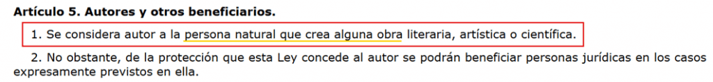 La definición de “autor”, la persona que se beneficiará de la protección de la LPI, aparece en el artículo 5.1 de la ley.
