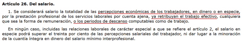 Pues lo cierto es que SÍ. La empresa puede descontar esa parte de la nómina. ¿Por qué? Porque el salario sirve para pagar el tiempo efectivamente trabajado y los descansos, que es lo que dice el ET en su artículo 26.1.