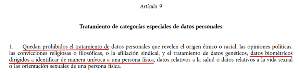 Los datos biométricos, como son la huella dactilar, están clasificados en el RGPD como una categoría especial de datos. En el artículo 9.1 de este Reglamento queda expresamente prohibido su uso para identificar a las personas.